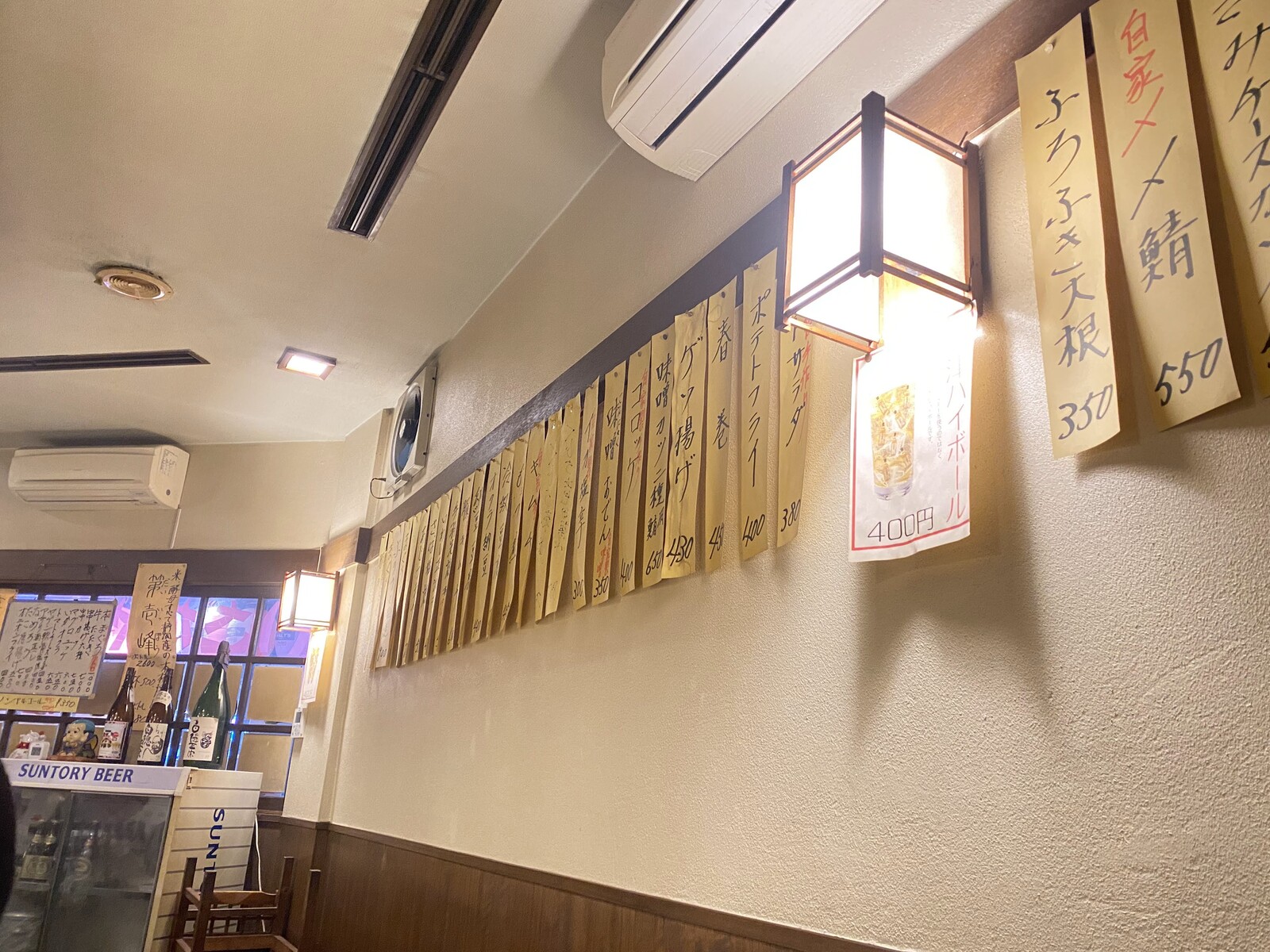 カウンターに座って振り返ると、壁にも手書きメニューがたくさん。