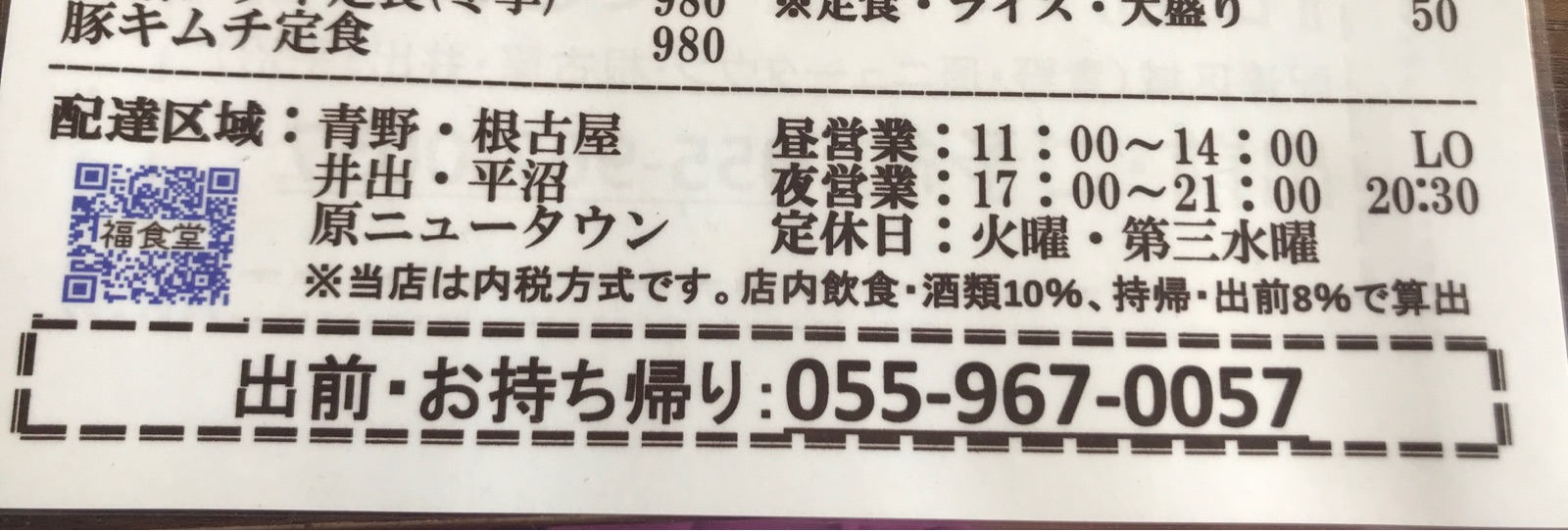 沼津:市内局番2桁コレクション【フタコレ(仮)】⑤福食堂