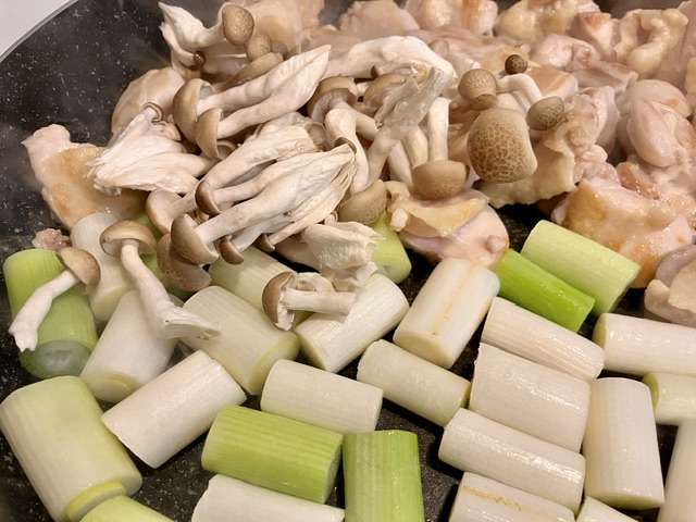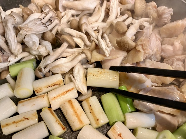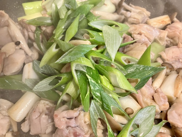 肉・野菜に火が通ったら白ねぎの青い部分、