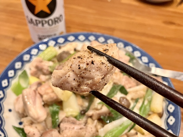 料理男子のんべえが作る、沼津ねがた白ねぎと鶏肉の塩麹炒め。広報ぬまづ12月1日号に載ってたレシピ
