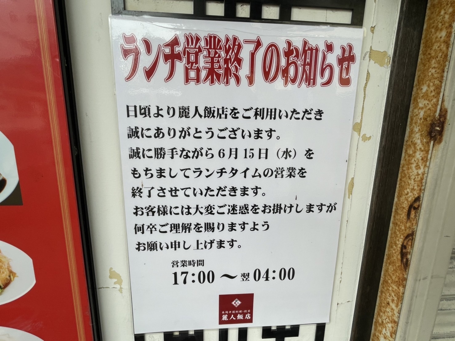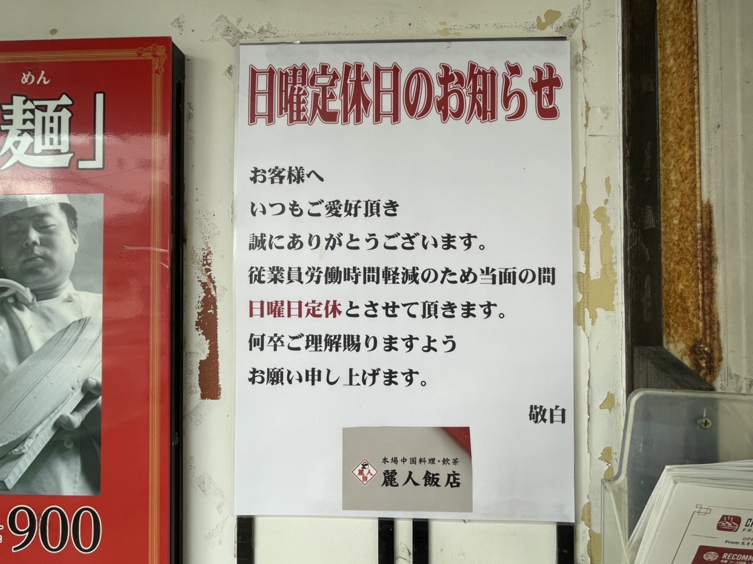 【ぬまつーグルメ】日曜日定休のお知らせ。沼津駅北口の麗人飯店。(沼津市高島町)