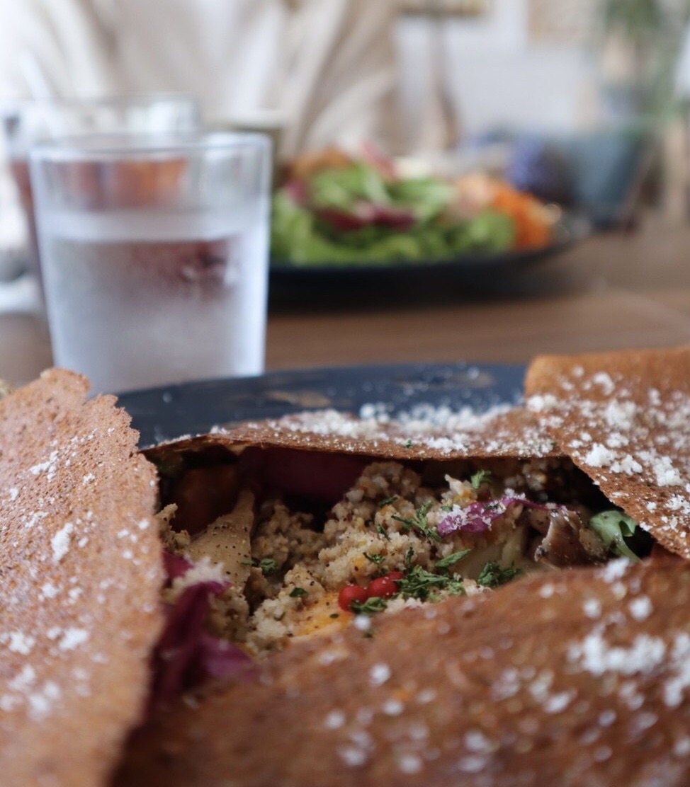 内側には卵が入っていてガレット生地と合わせて食べると口の中でちょうどよ~~くパリパリ生地が柔らかくなって美味しすぎました…次に「好きな料理は何ですか?」と聞かれたら、長年1位にランクインしていたオムライスを抑えて「ガレットです!!!」と食い気味で言ってしまうかもしれません。