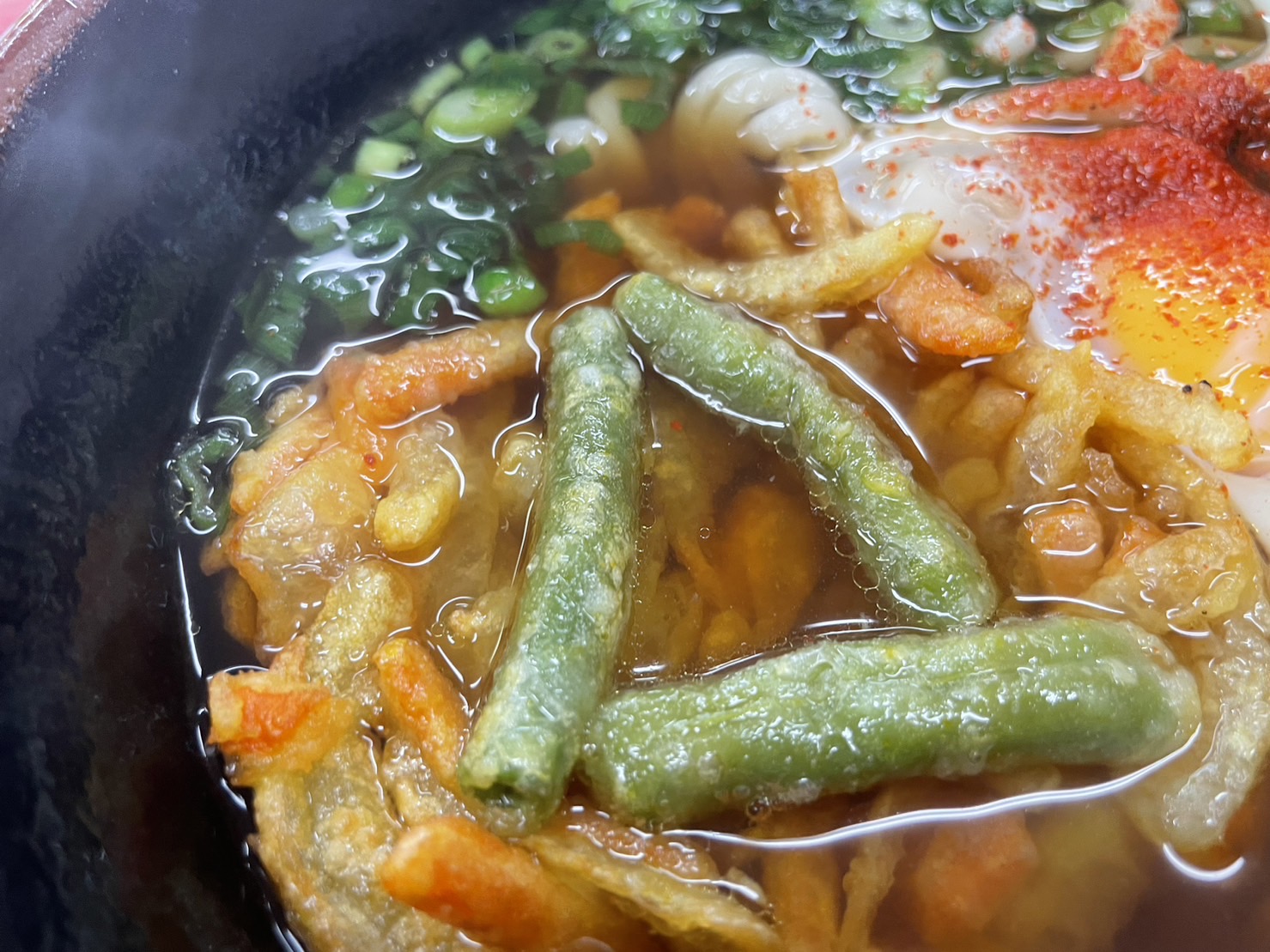 野菜天はインゲンちゃんやニンジンちゃん、玉ねぎちゃんとかが入っていて結構具だくさん。