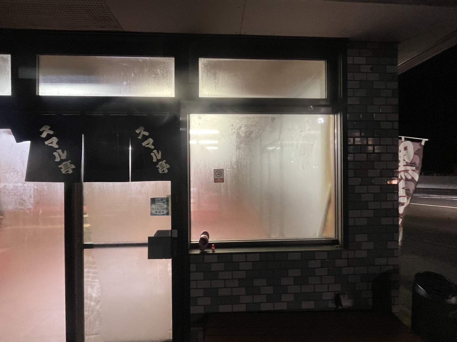 【速報】さっき。ガラスがめっちゃ曇ってた。お店のナカがほとんど見えないぐるめ街道のスマル亭。(沼津市岡一色)