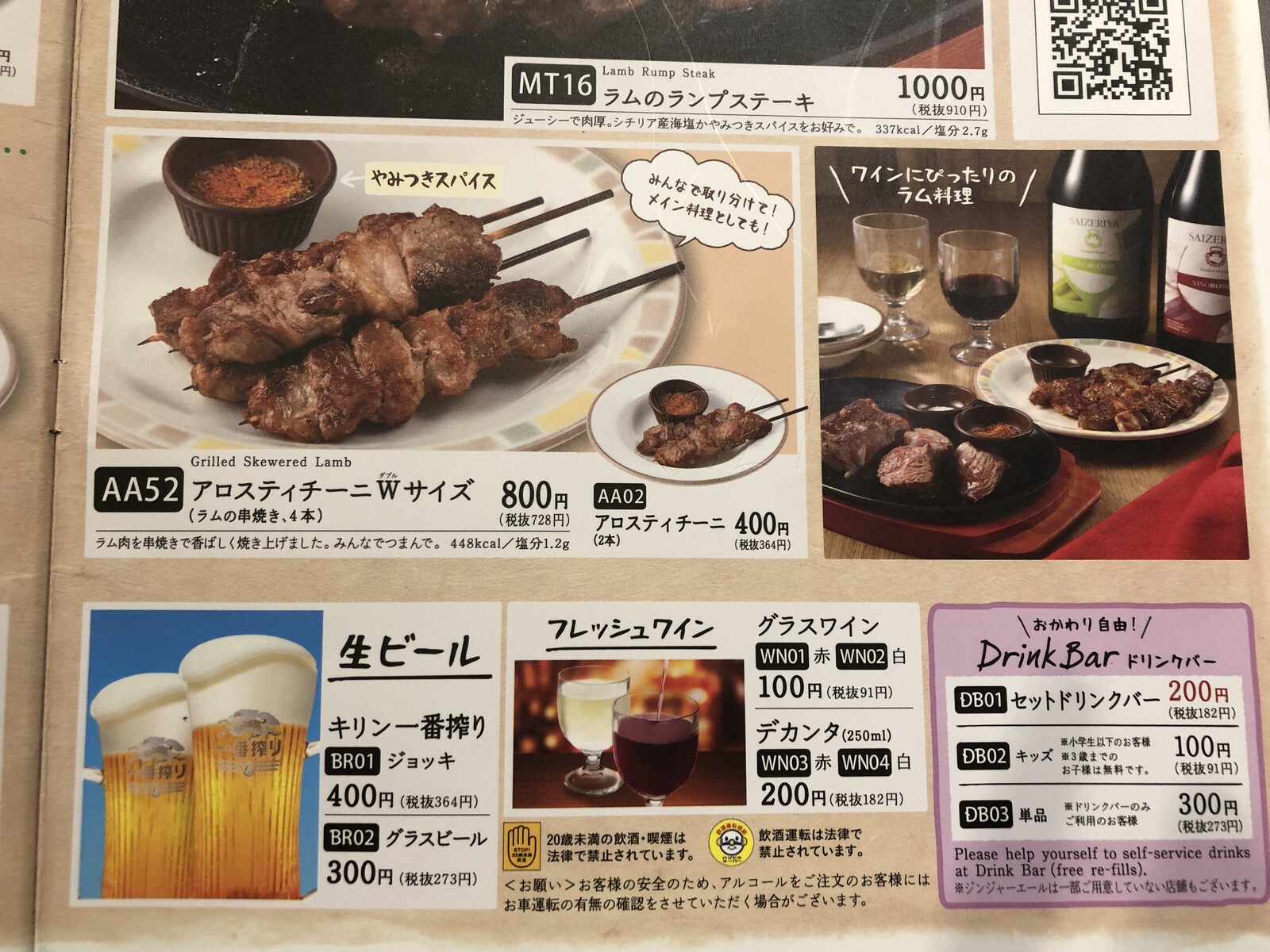 ラムの串焼き2本と生ビール飲んでも800円ですよ!やっすー