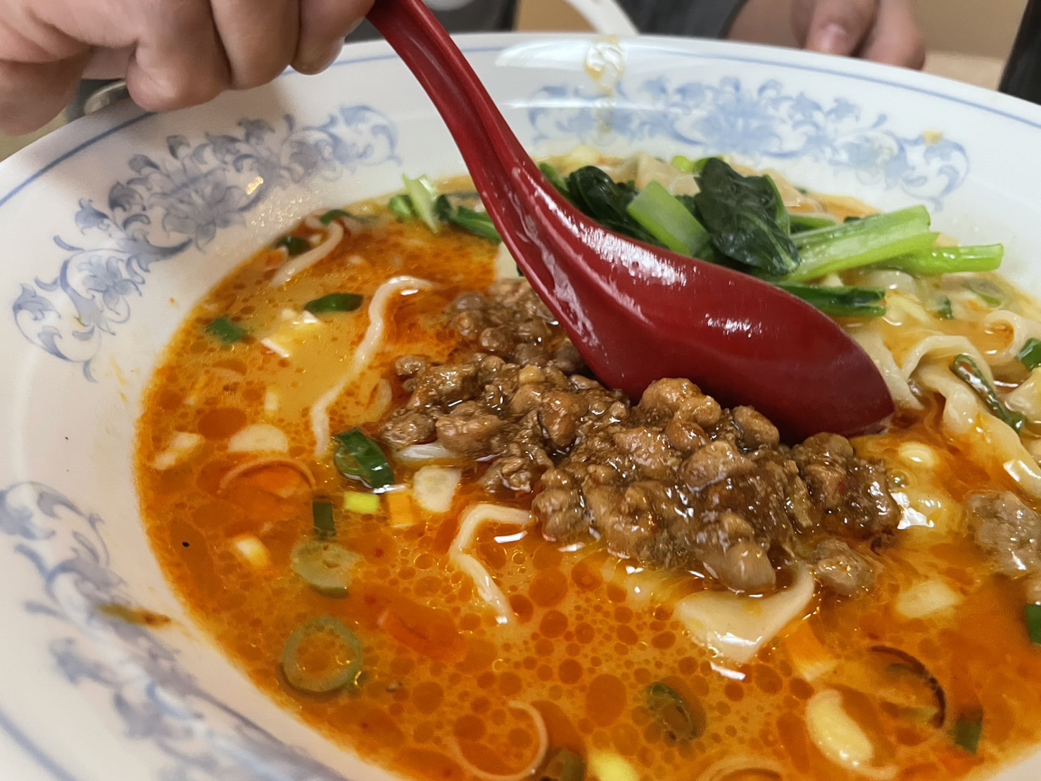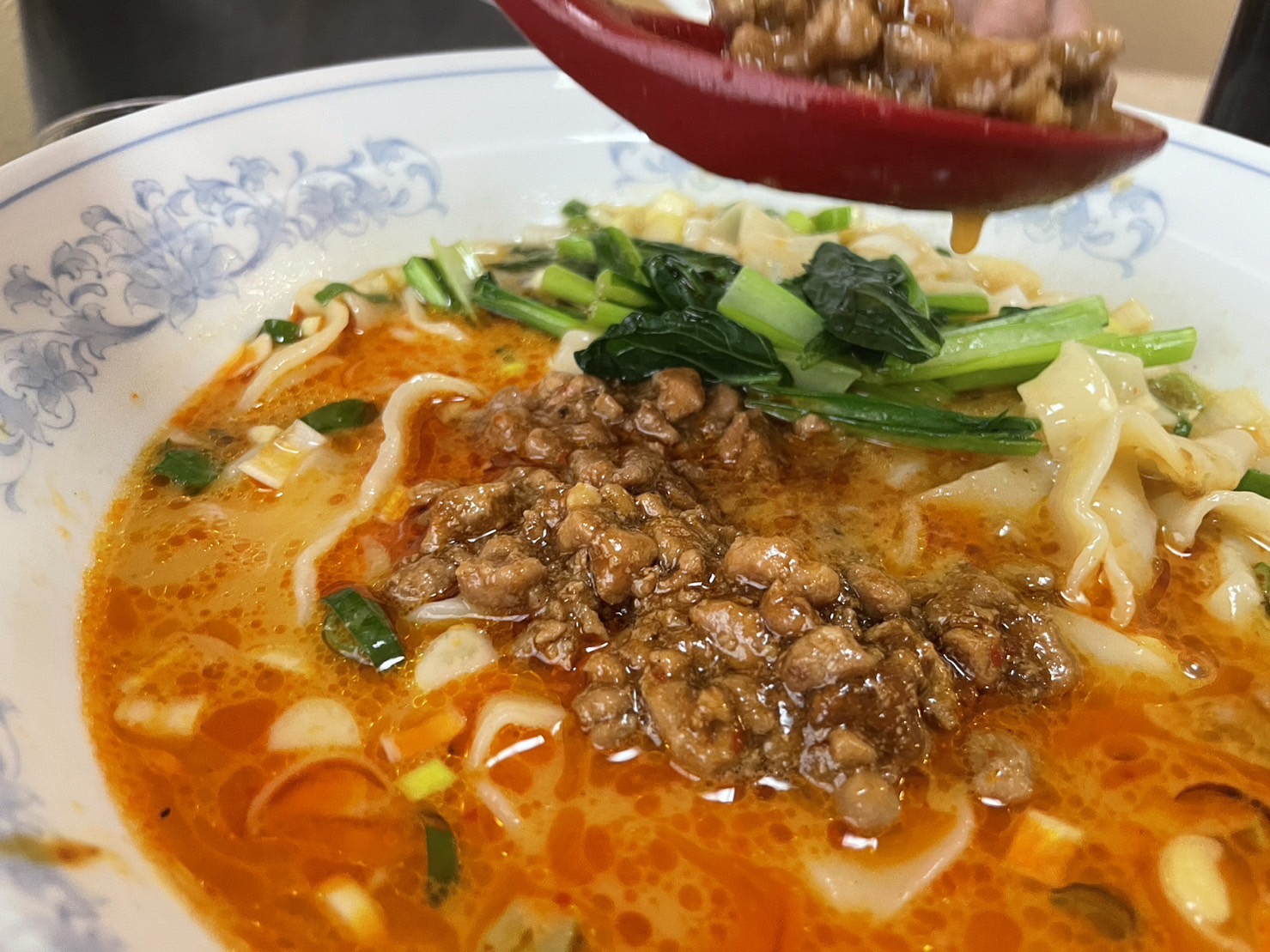 たっぷりのお肉は、スープに溶かしてもいいし、ちょっとすくってご飯にのせると「タンタンにのってる肉をのっけた丼」になってとてもうまい。