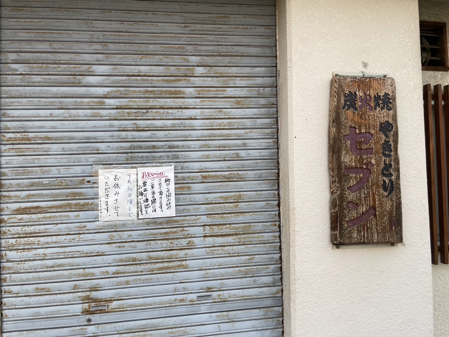 9月30日頃まで お休みさせていただきます。やきとりセブン だそう。