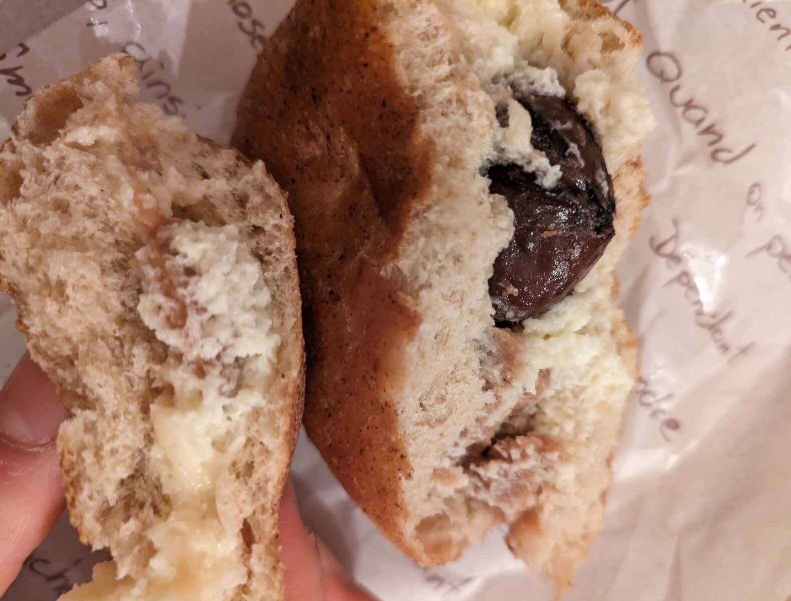 サワードゥのムチムチ生地にふわふわのクリームと大きな栗が入っててめちゃくちゃおいしい。
