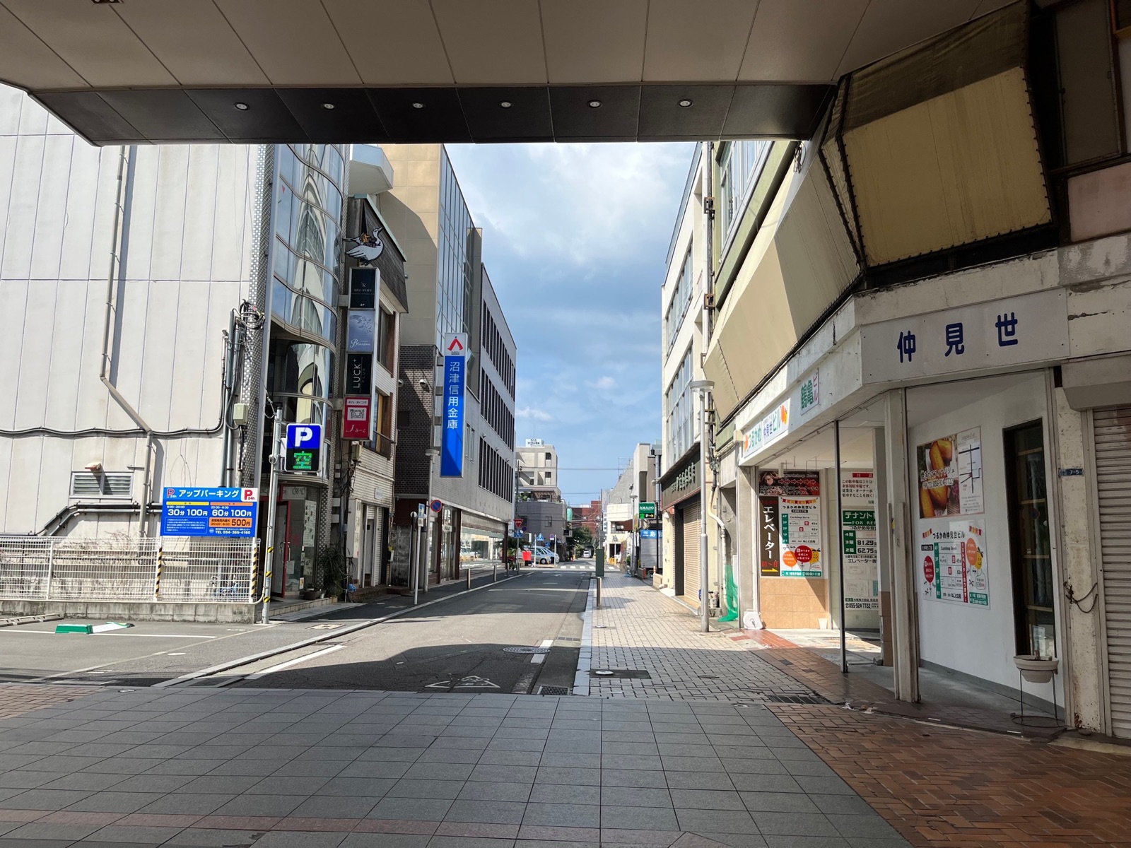 今日も空が青く燦々としていた。ぬまづではお馴染みの創業75年ワシントン靴店さんのあるあたりを目印に、商店街を東西に通り抜ける小道が今日の舞台、仲見世通りコミナード。
