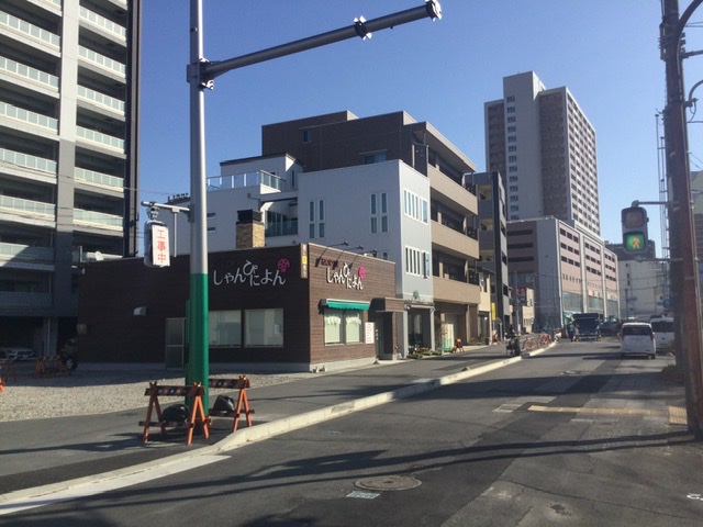 向こう側に沼津情報ビジネス専門学校の建物が見えます。