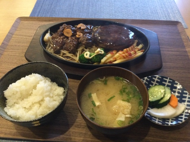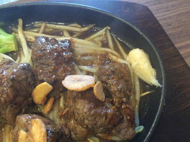 サイコロステーキの下に見えるのはモヤシです。