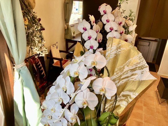 新店らしい、たくさんの胡蝶蘭がいいですねえ。