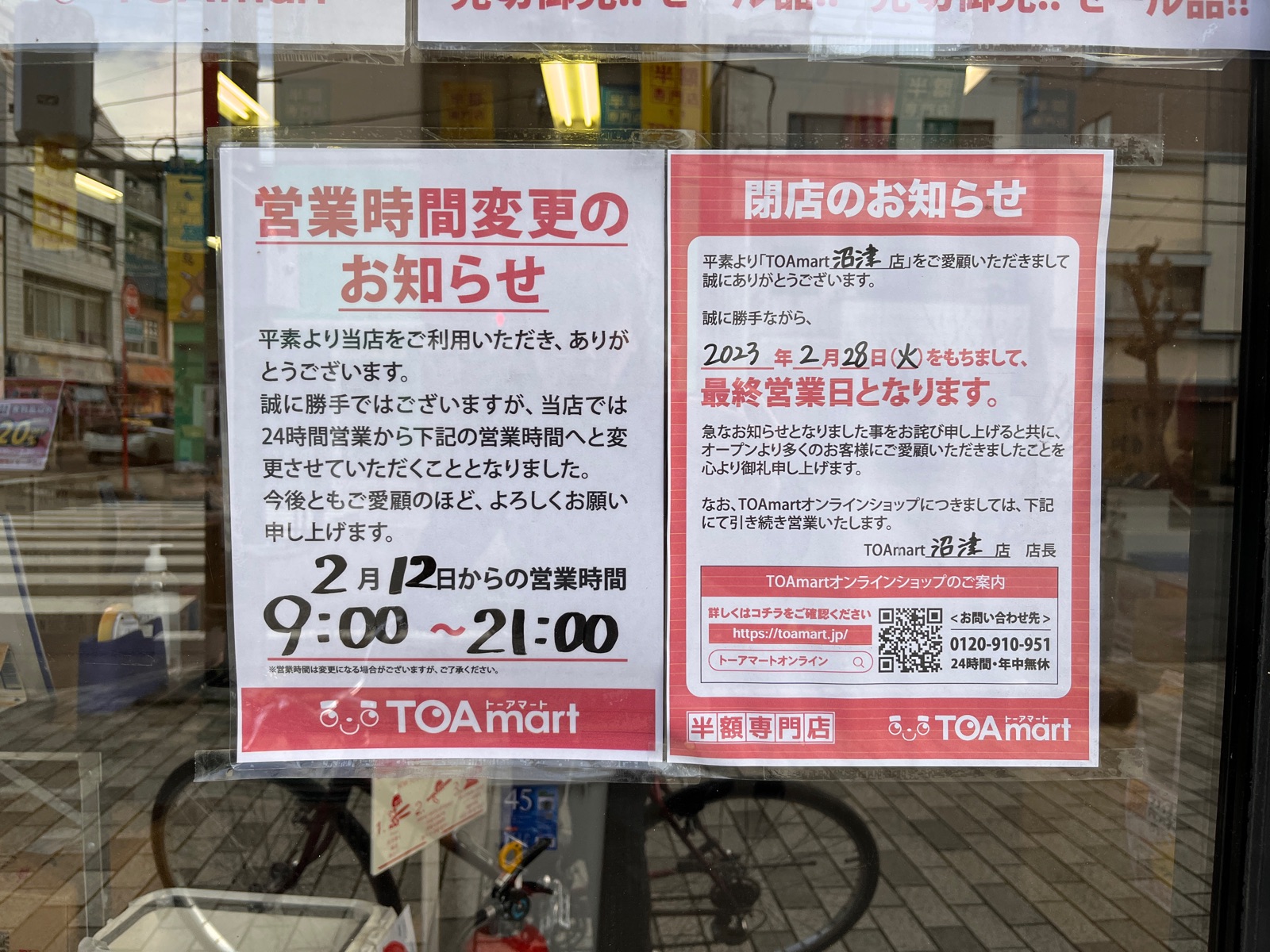 【閉店】半額専門店「TOAmart(トーアマート)が2月28日で閉店。(沼津市添地町)