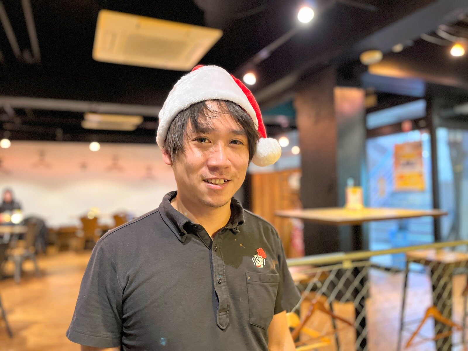 開店前からサンタさんを頭につける意識の高さは、さすが店長です。