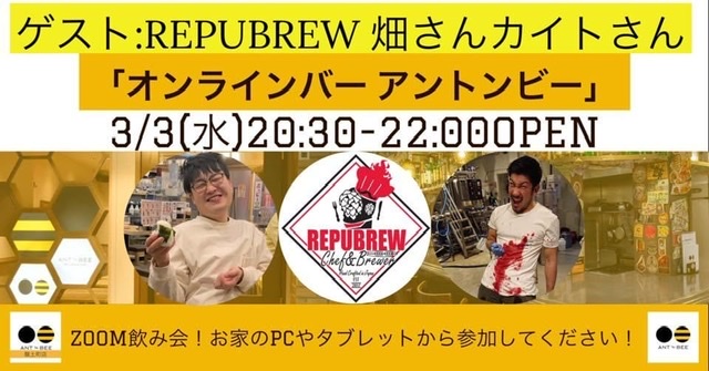 六本木にあるクラフトビアバー「ANT 'N BEE アントンビー」さんのZOOM飲み会に登場するらしい。