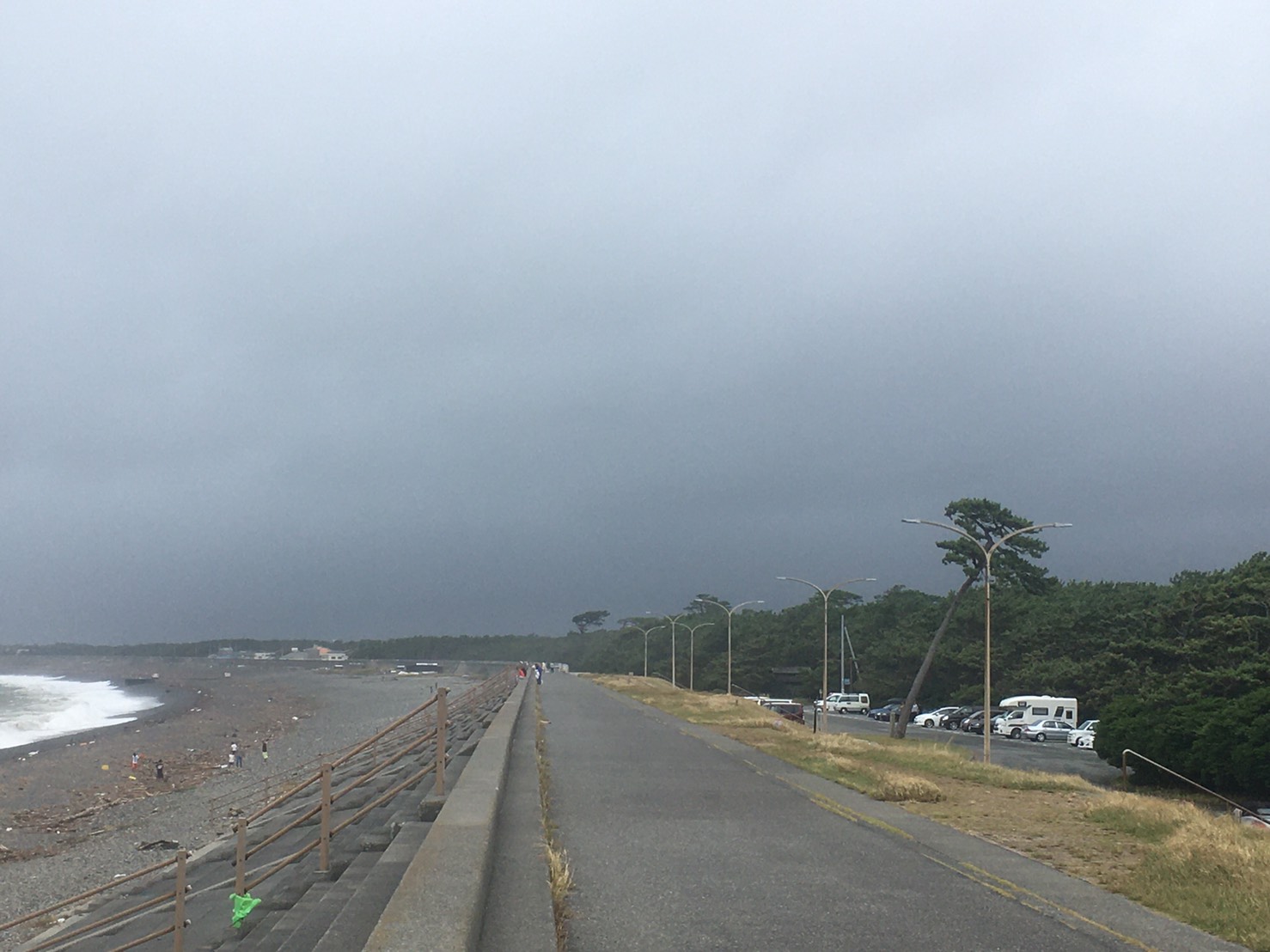 今日の千本浜海岸。荒れてる。こういう日はなるべく海に近づかないほうが・・・いい。