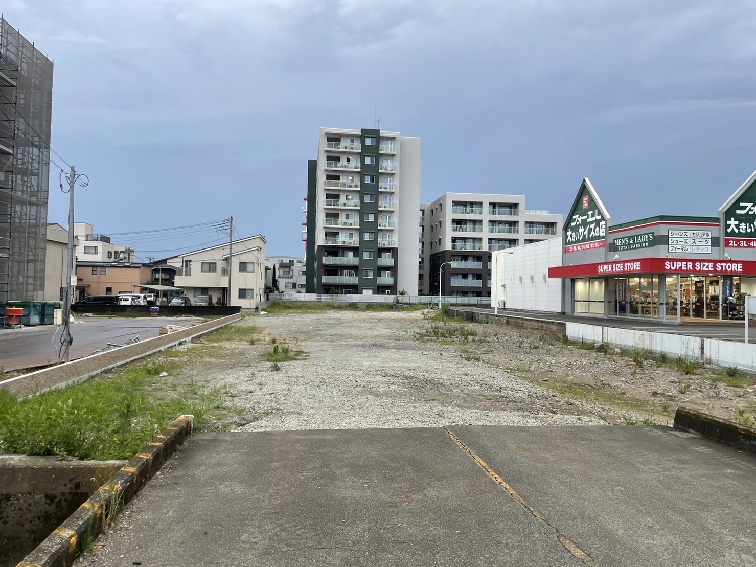 学園通りの大きいサイズの店フォーエルの横、更地になってる。(沼津市泉町)