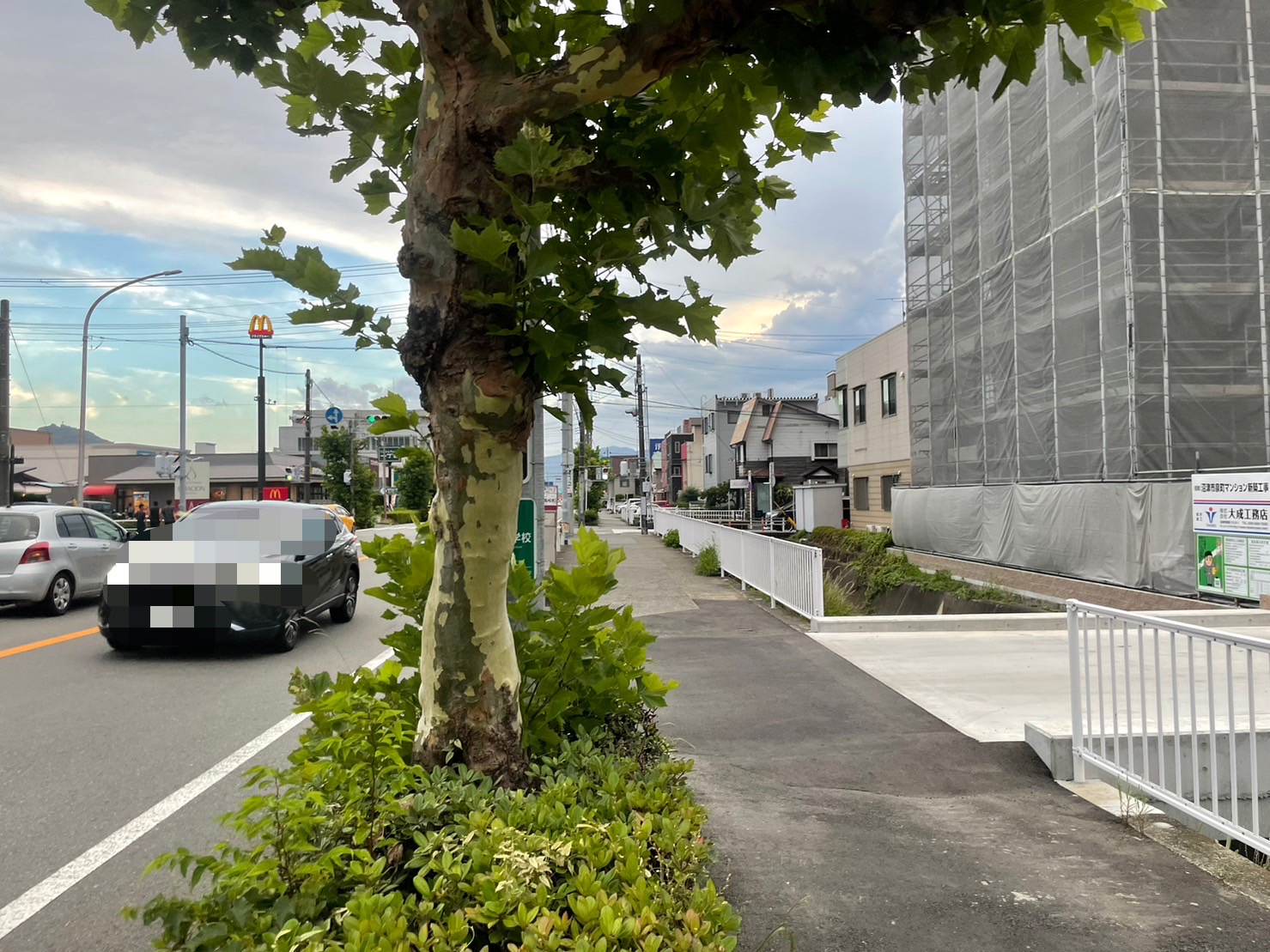 すぐそこには学園通りのマック。道路の向こう側には、沼津市立沼津高等学校・中等部。