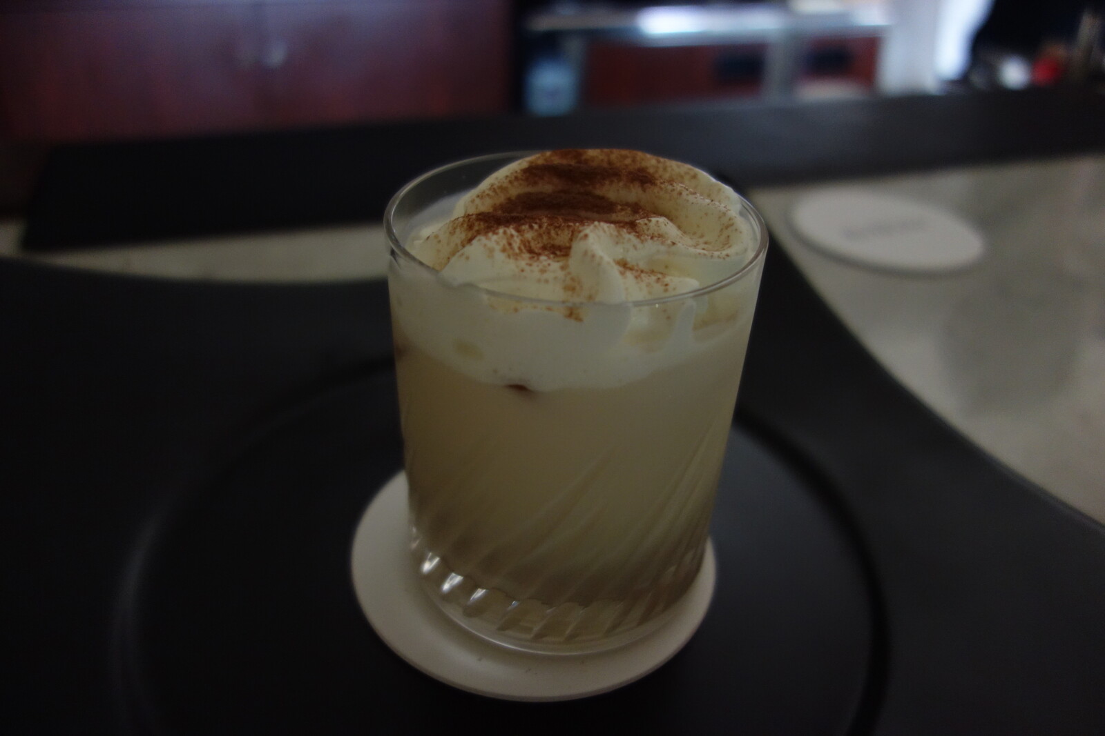 甘〜いチョコレートの風味と、上に乗っている生クリームにはしっかりとスモーキーな香りもついている