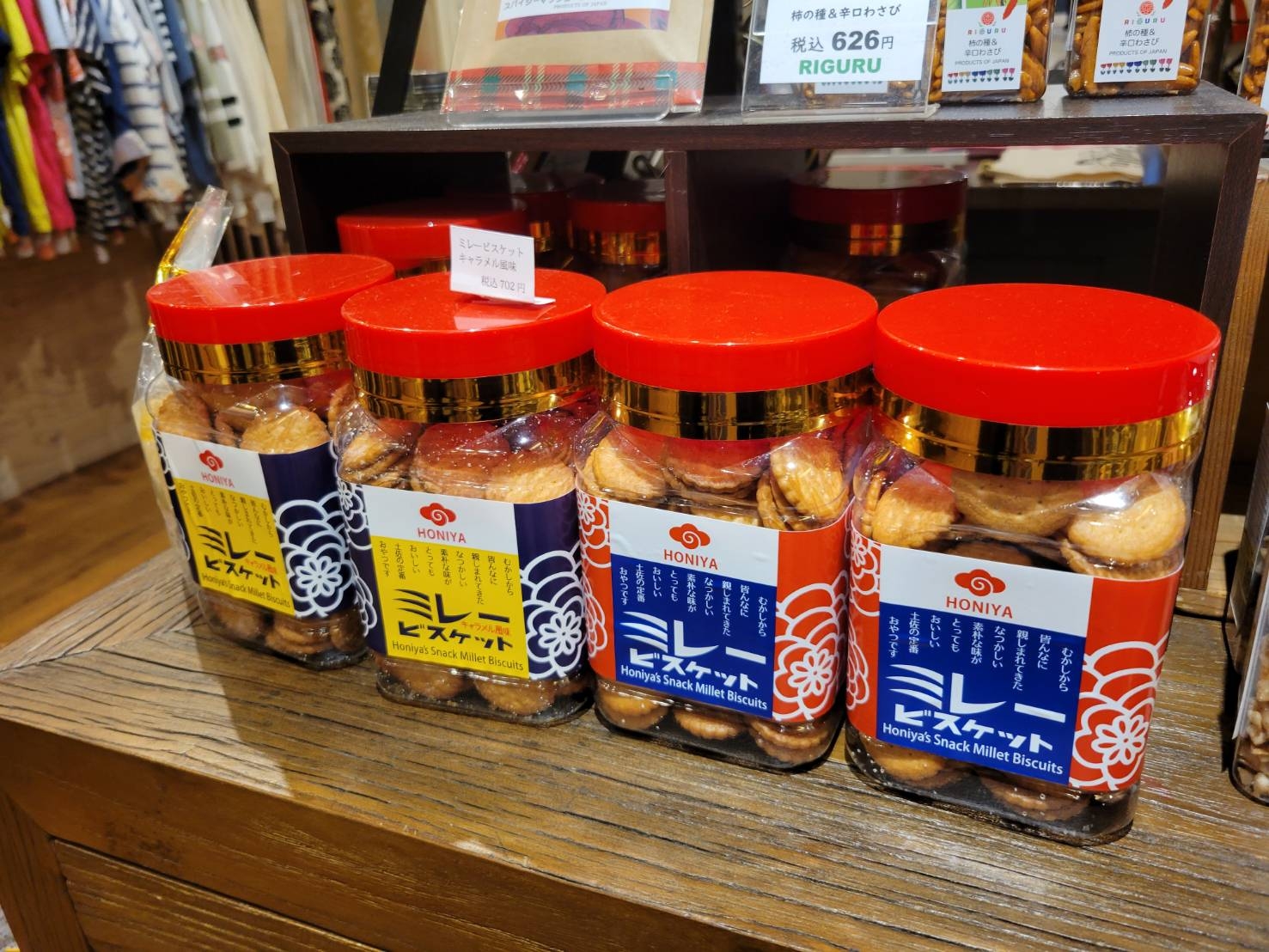 高知銘菓『ミレービスケット』(ほにやパッケージ)をゲットできるのもうれしいところ。