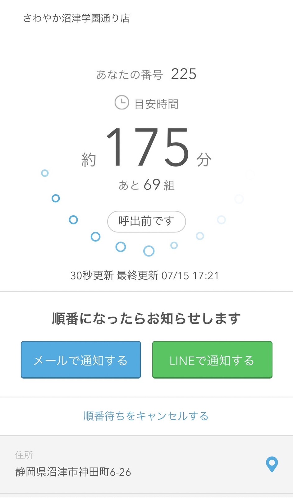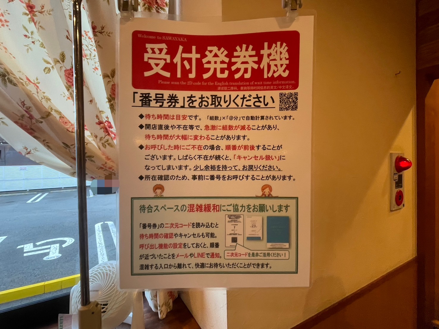 ただ、これは目安の時間だから、QRコードを読み込むとあと何組か教えてくれるアプリ?で、ちょいちょいチェックした方がいい。