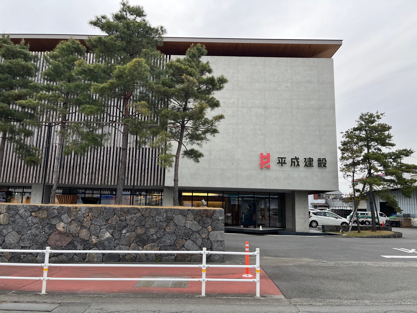 道を挟んで西側には平成建設の本社がある。