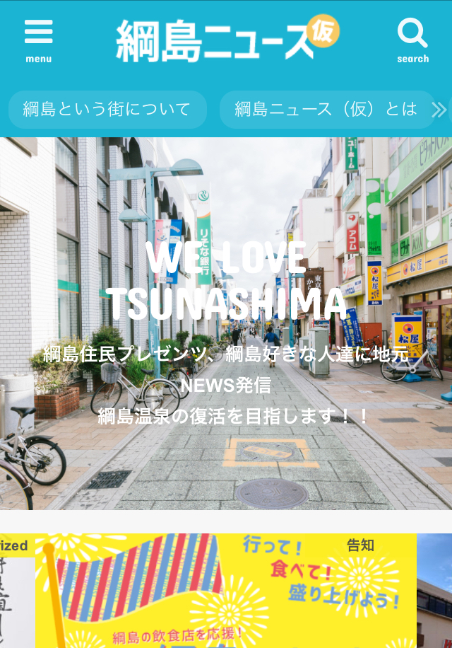 綱島の様々なジャンルのニュース・独自取材を綱島好きな人達に届けるサイトです。ちなみに綱島ニュース(仮)は正式名称です、(仮)を外す予定は現在ありません。だそう。