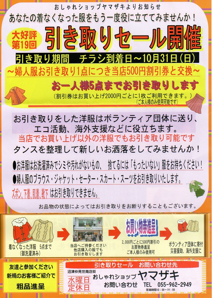 引き取りセールは10月末まで。