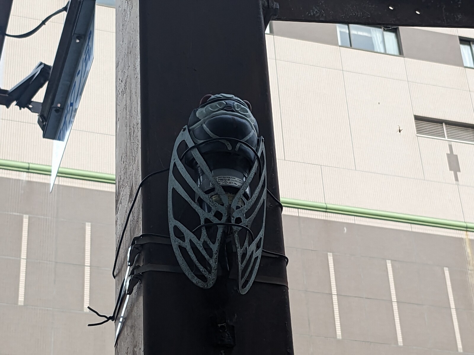 沼津リバーサイドホテルの目の前の信号機に、なにかいる。(沼津市上土町)