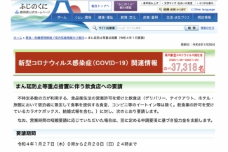 - 【1/27から】静岡県のまん延防止等重点措置に伴う飲食店への要請に関する情報が、公開されてる。