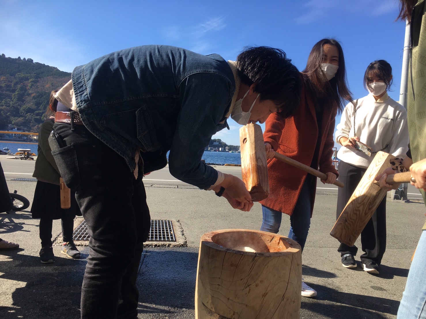 沼津市戸田にあるホステルタゴールの「餅つきと書き初め」に行ってきた。令和4年1月3日