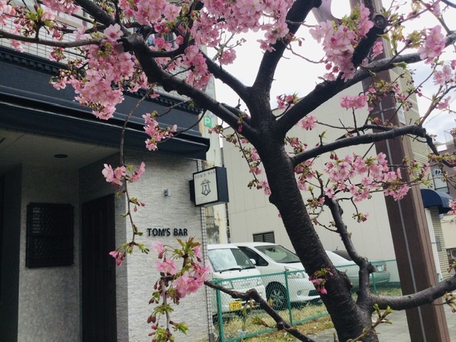 交差点だけじゃなく、TOM'S BARの前にも桜。