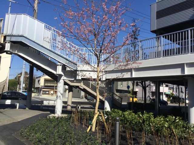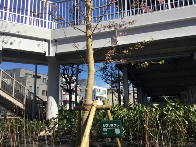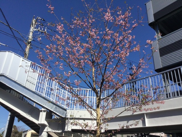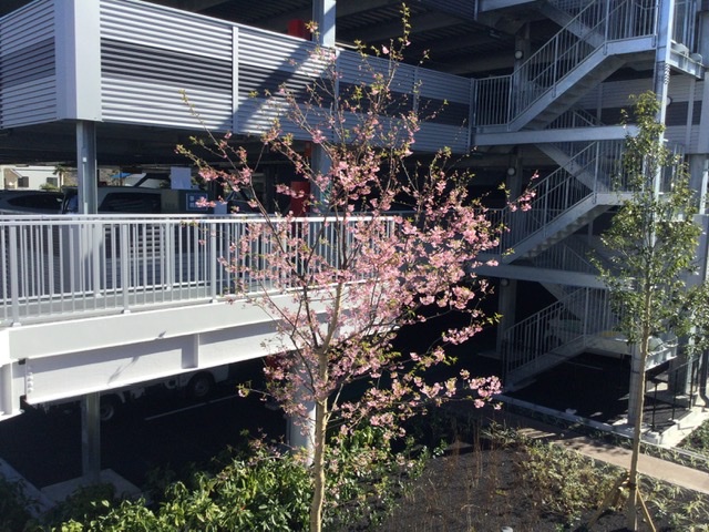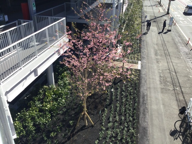 河津桜の若木が花を咲かせておりました。