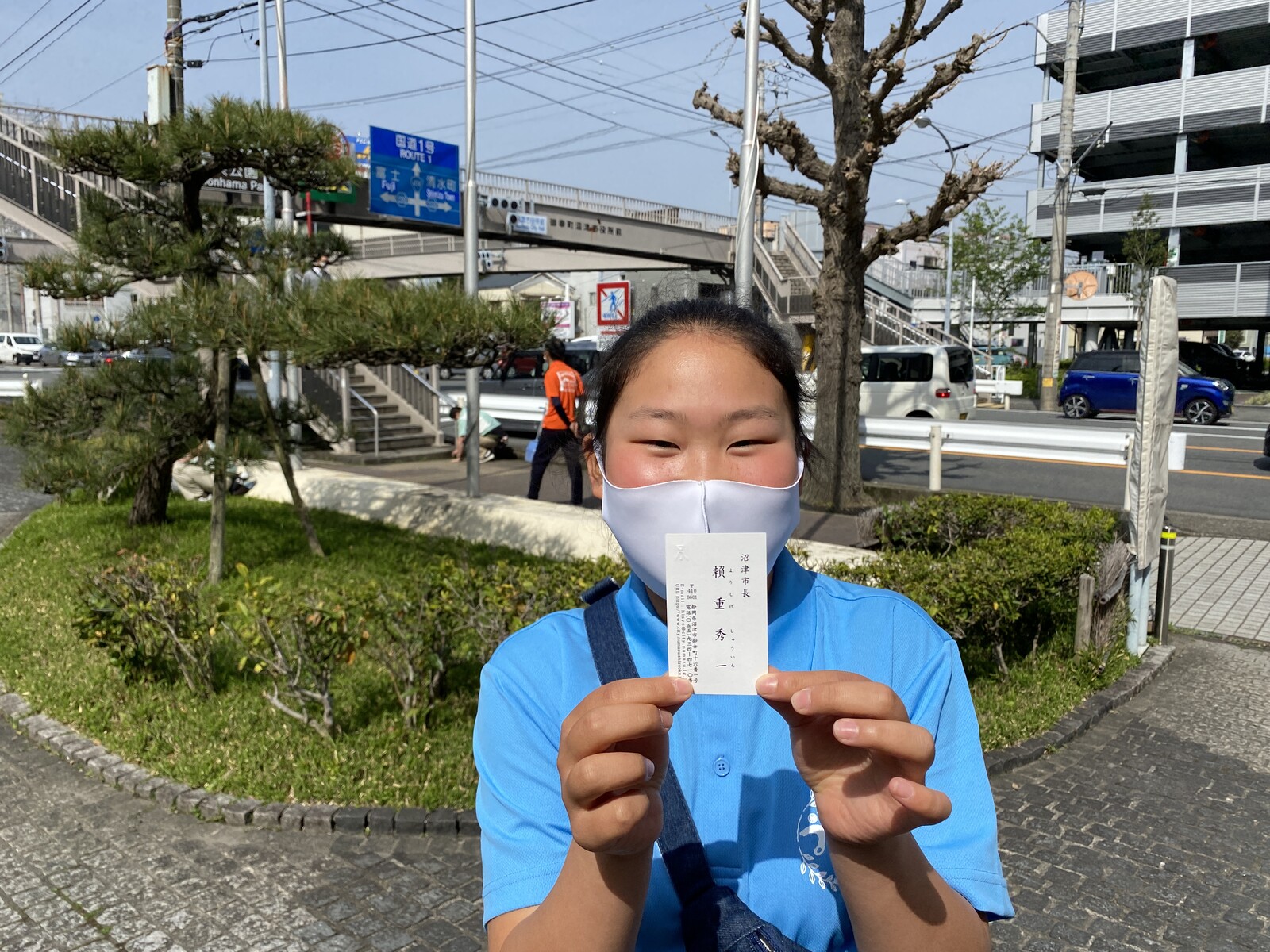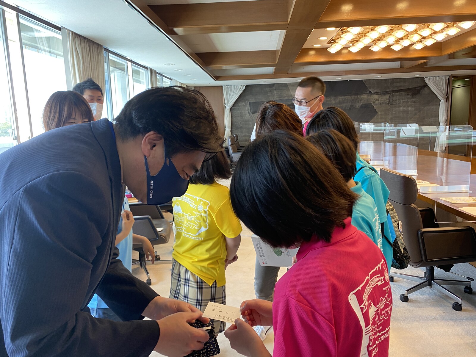 頼重市長の名刺をもらって、とても嬉しそうな子供たち。