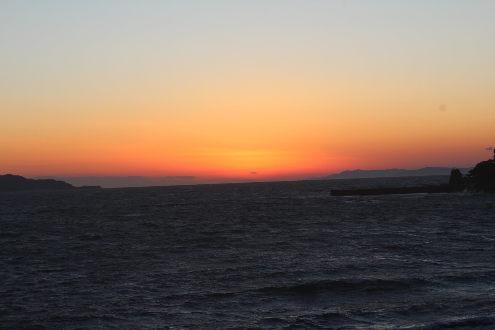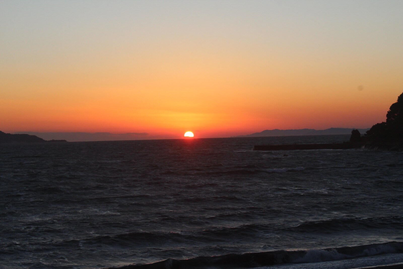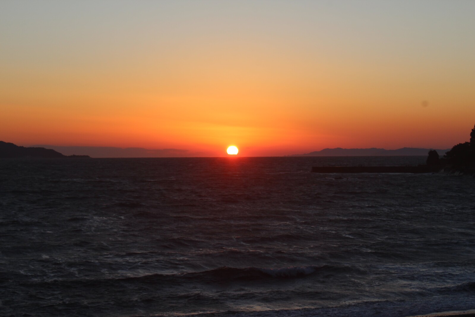 太陽の南中高度は季節によって違うため、どこでもこの現象が見えるというわけではありません。まさに、島郷海岸は、冬の寒い時期に水平線にまっすぐに太陽が沈んでいくので、これらの条件さえそろえば最高のダルマ夕日が見える絶好の場所なんですね。