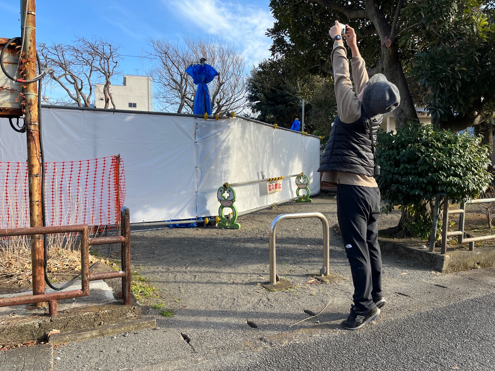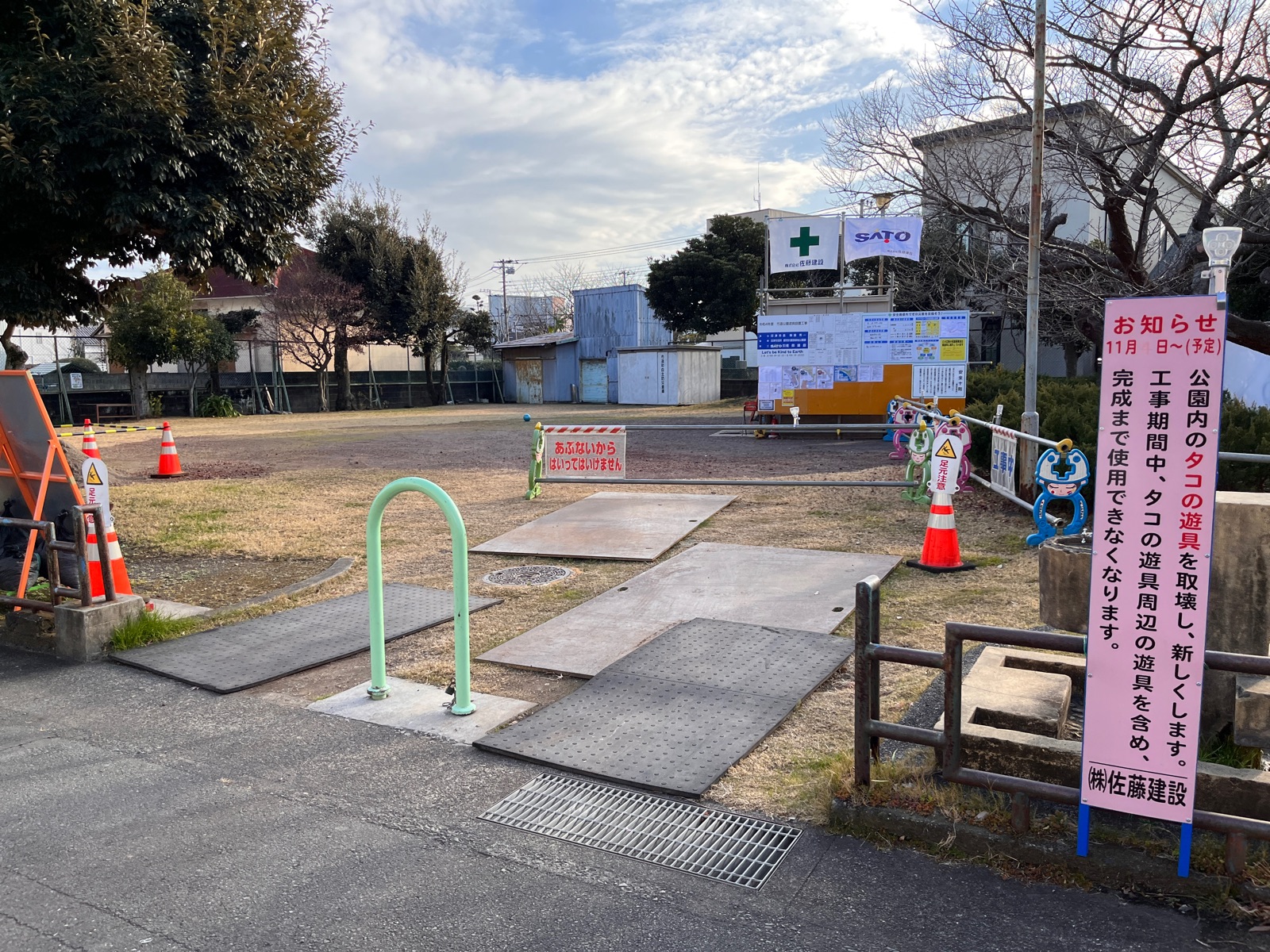 これは駿河台公園のタコの遊具の工事中のようす。