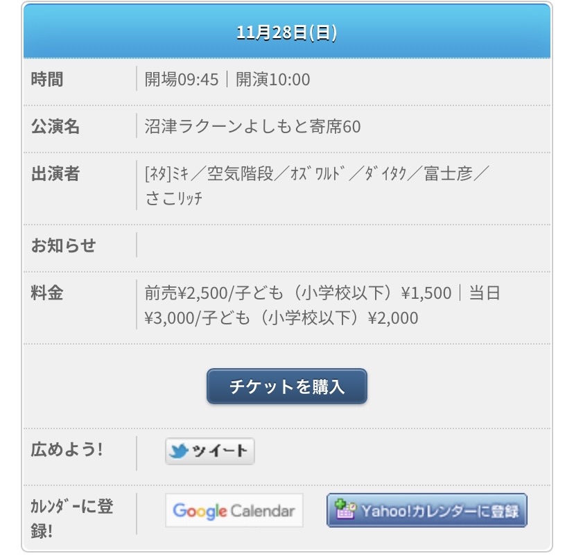 沼津ラクーンよしもと劇場の公演スケジュールを確認してみると、