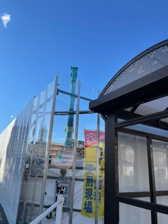 CO₂を削減している現場みたい。つい先週までこの旗なかった。
