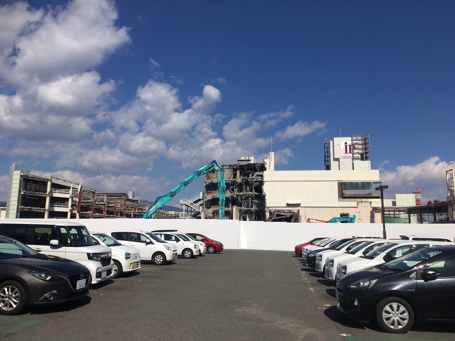 イシバシプラザ跡地。止まってる気がしてた建物の解体が一気にすすんでる。きょう令和4年2/27(日)の様子