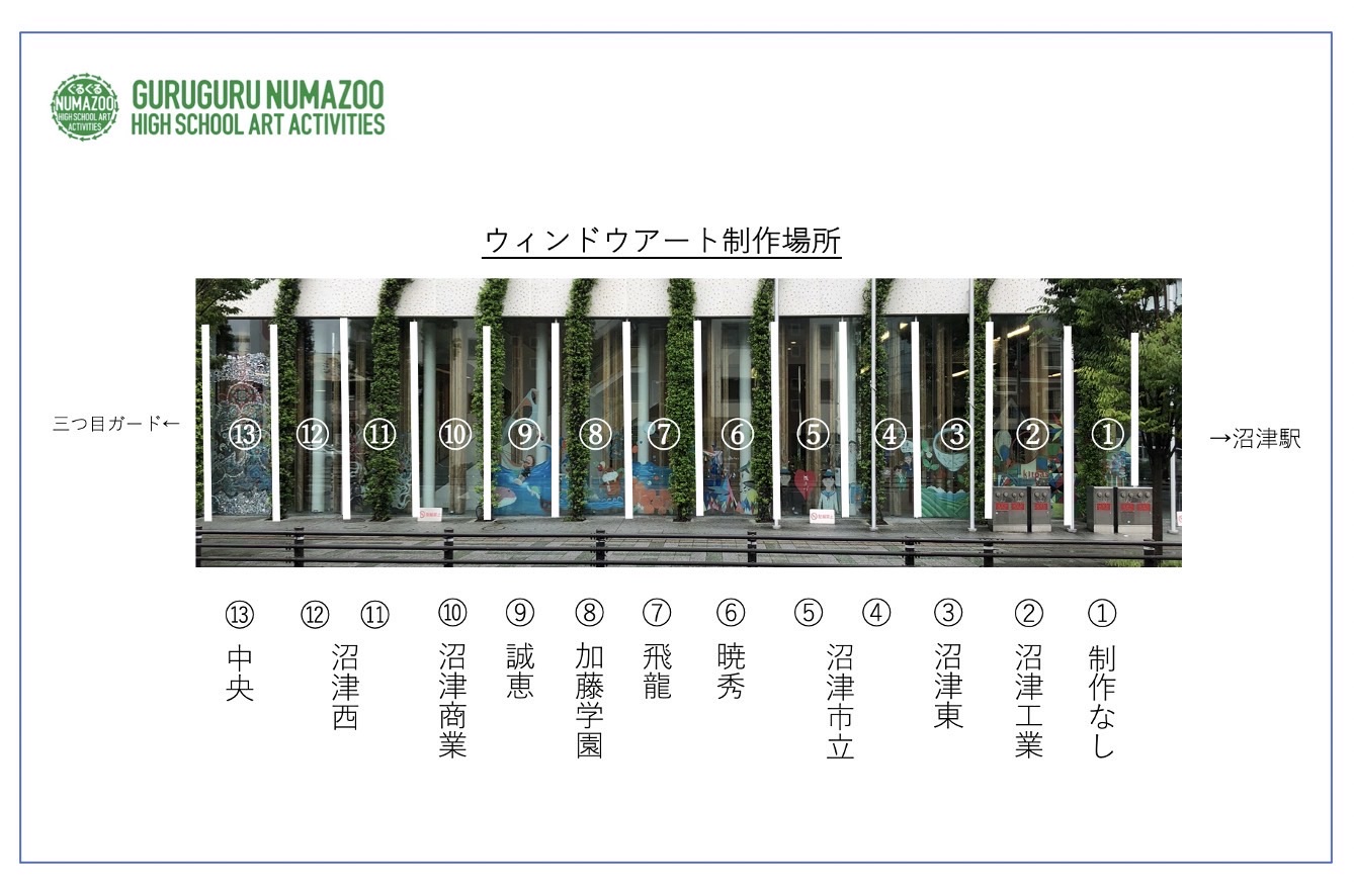 沼津市内の高校10校の美術部・美術コースの皆さんが参加するウィンドウアートプロジェクト。