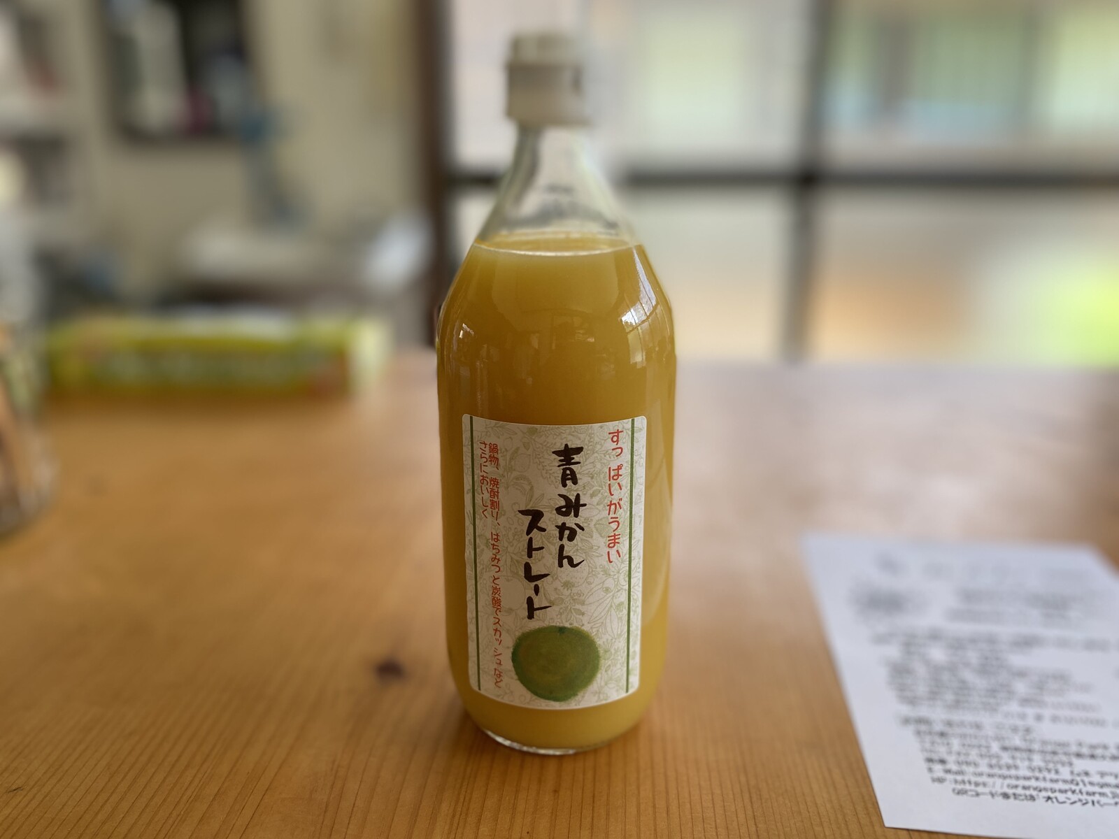 西浦久料にあるオレンジパークファームで作っている「青みかんストレート」。まさに、摘果みかん=青みかん を使用して作った青みかんジュースです。