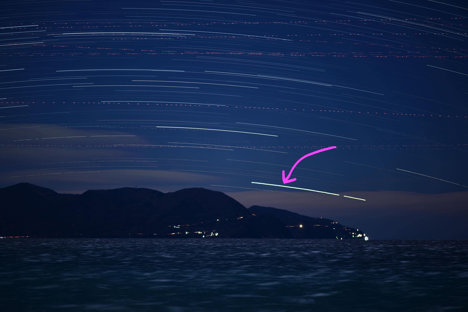 1時間のあいだにカノープスが動いた軌跡がくっきりと。