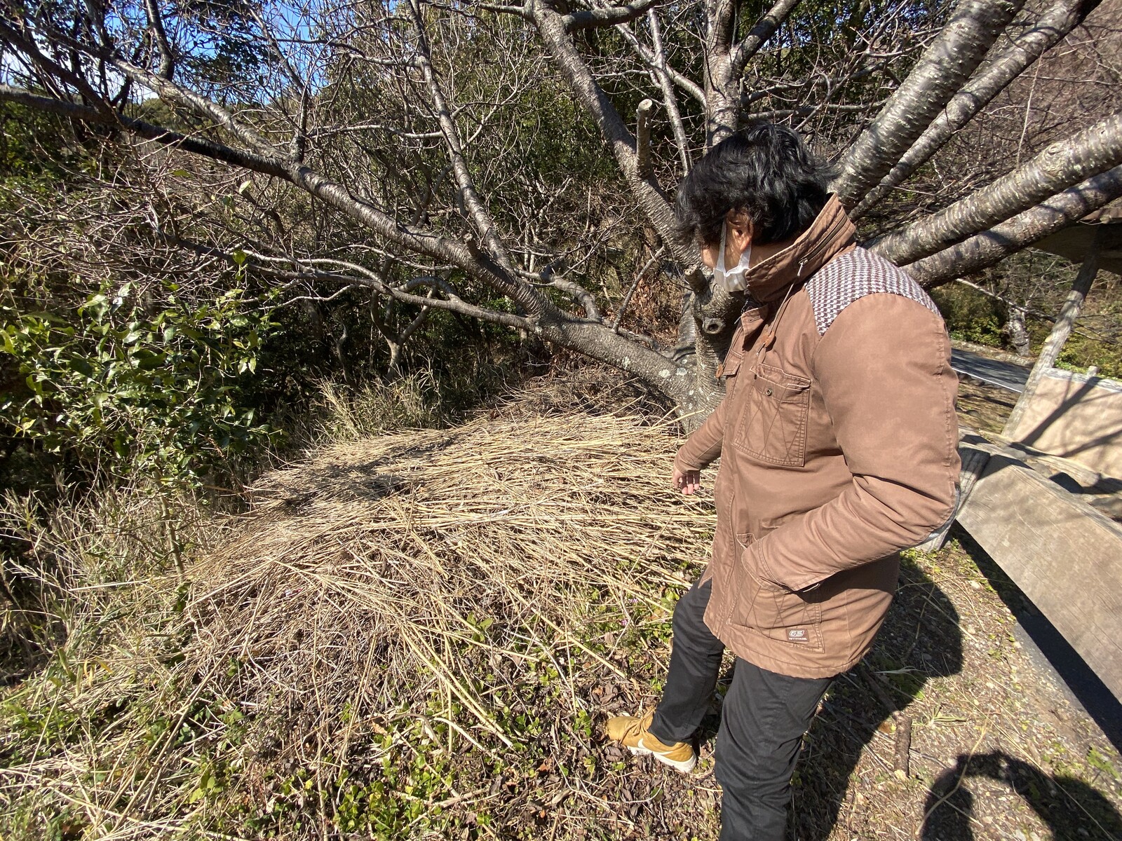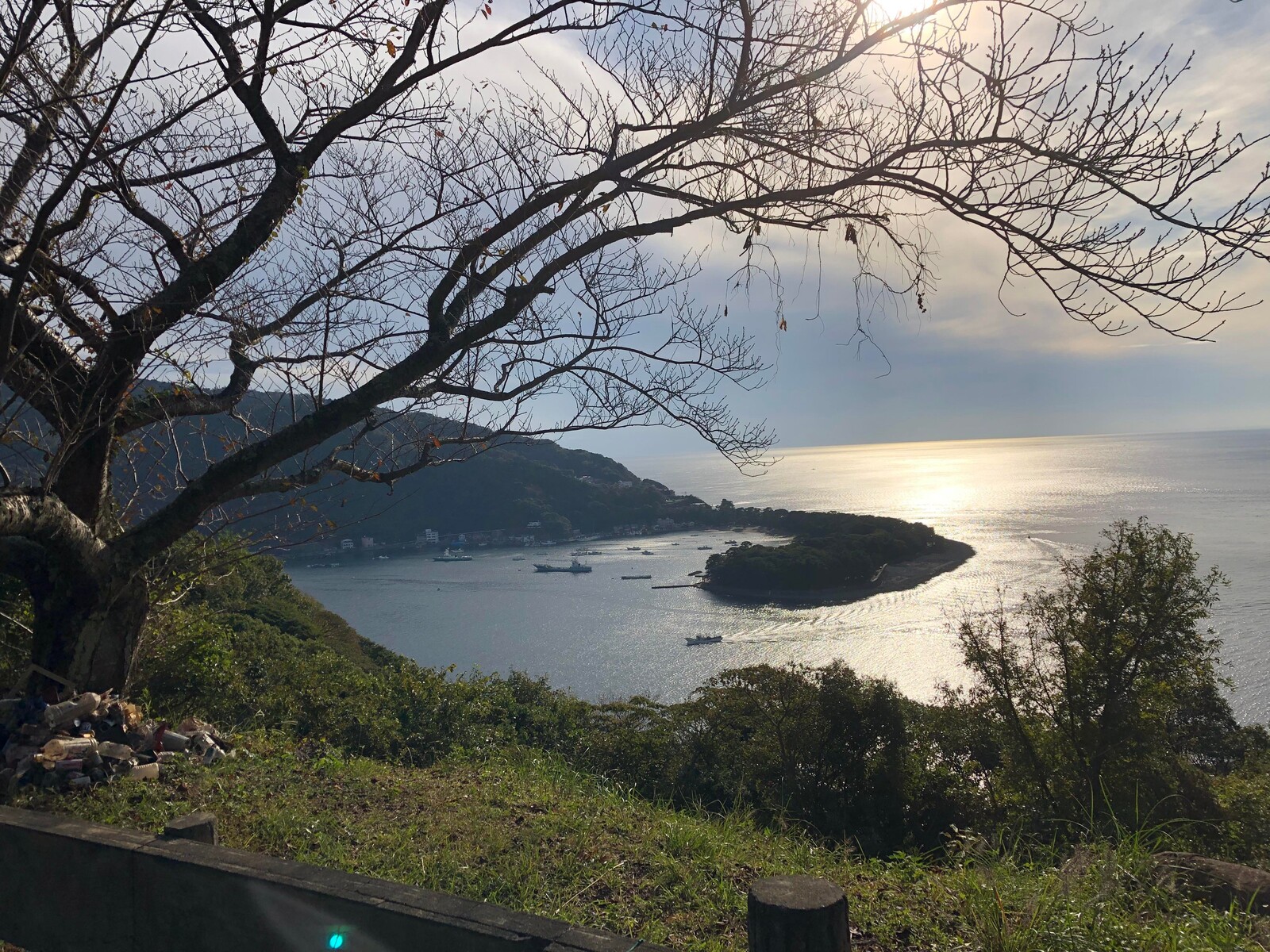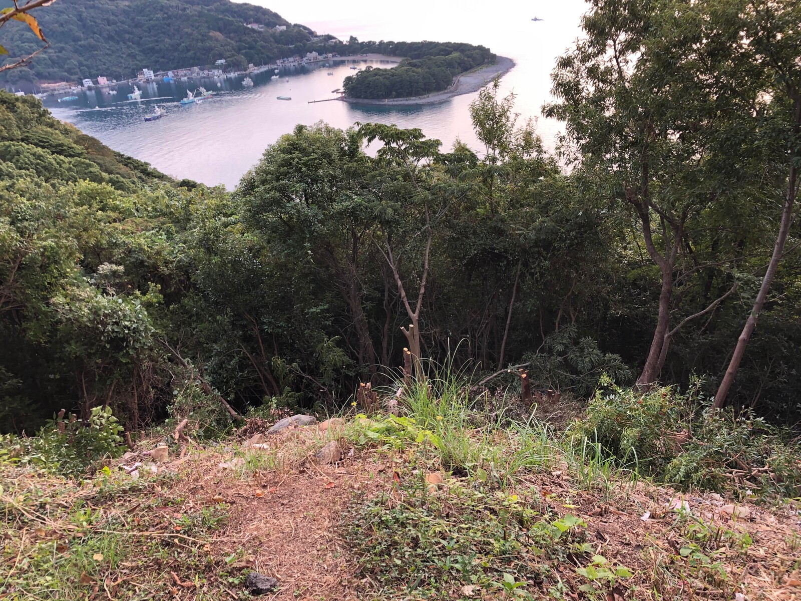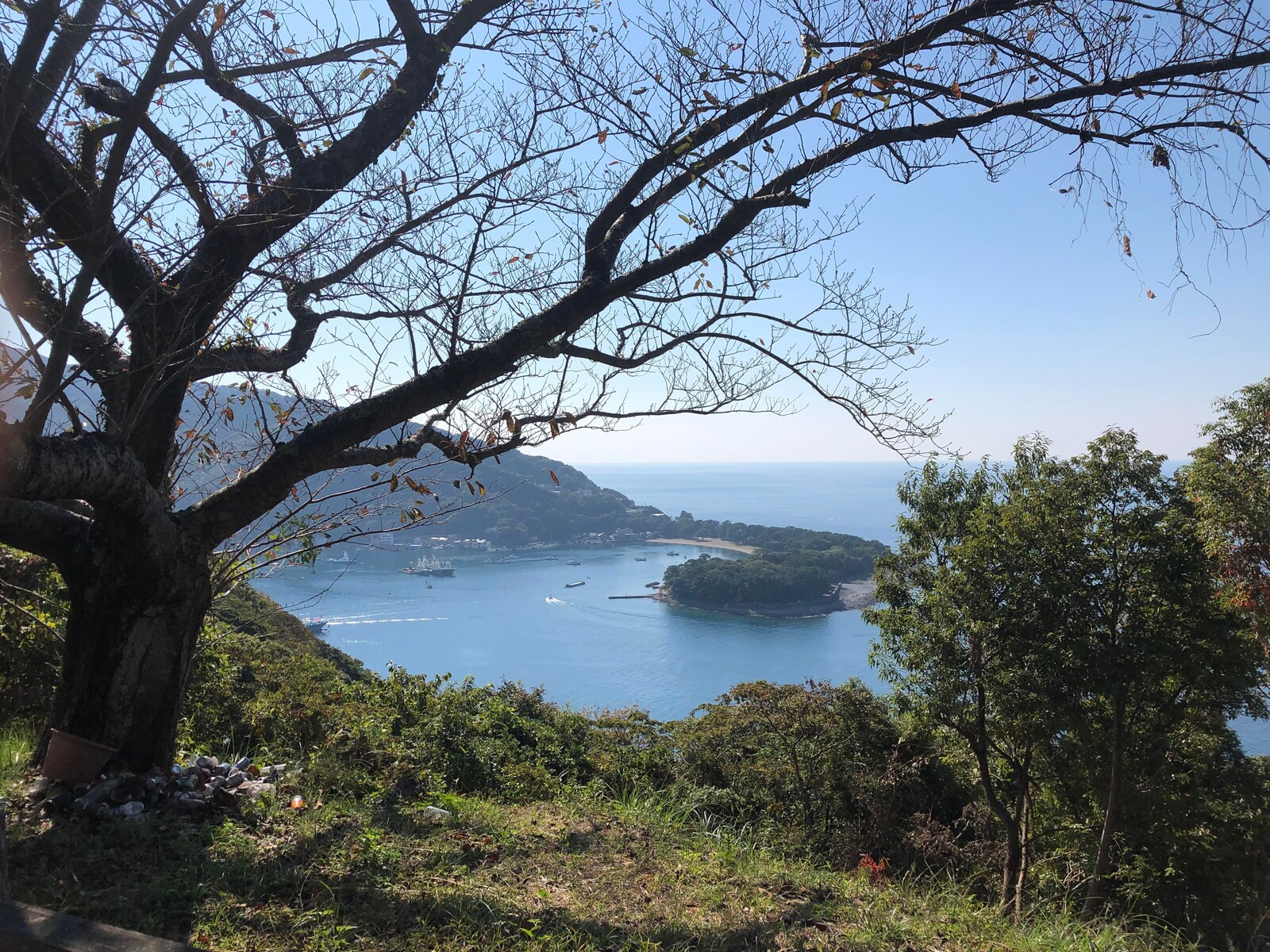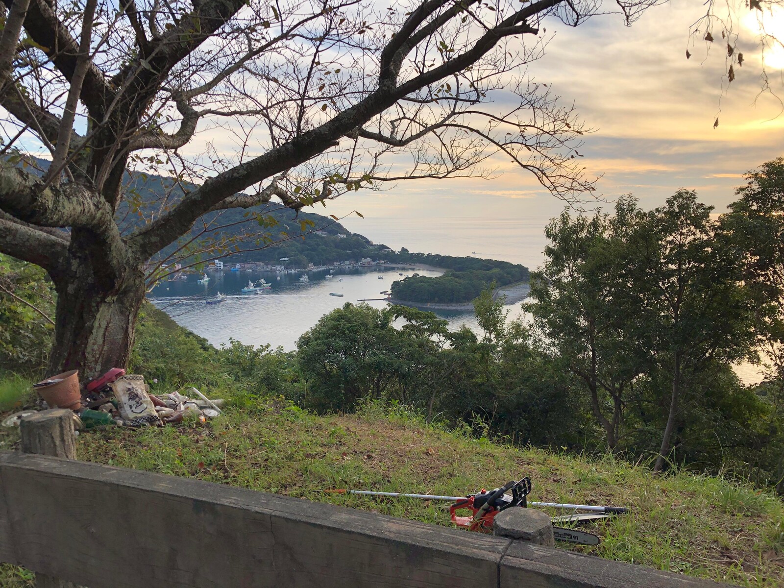はい、僕がやりました。ロケーション的に絶対に抜群の景色が見えるはずなのに、ゴミや伸び放題の草や木でまったく見えなくなっていました。これはもったないと思い、木を伐採し、草刈りをしながらゴミを拾いました。
