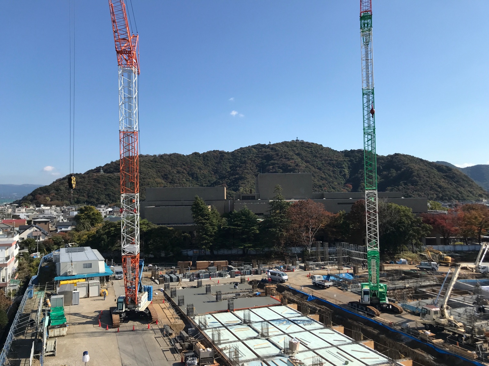 屋上からだと、重機が近っ。