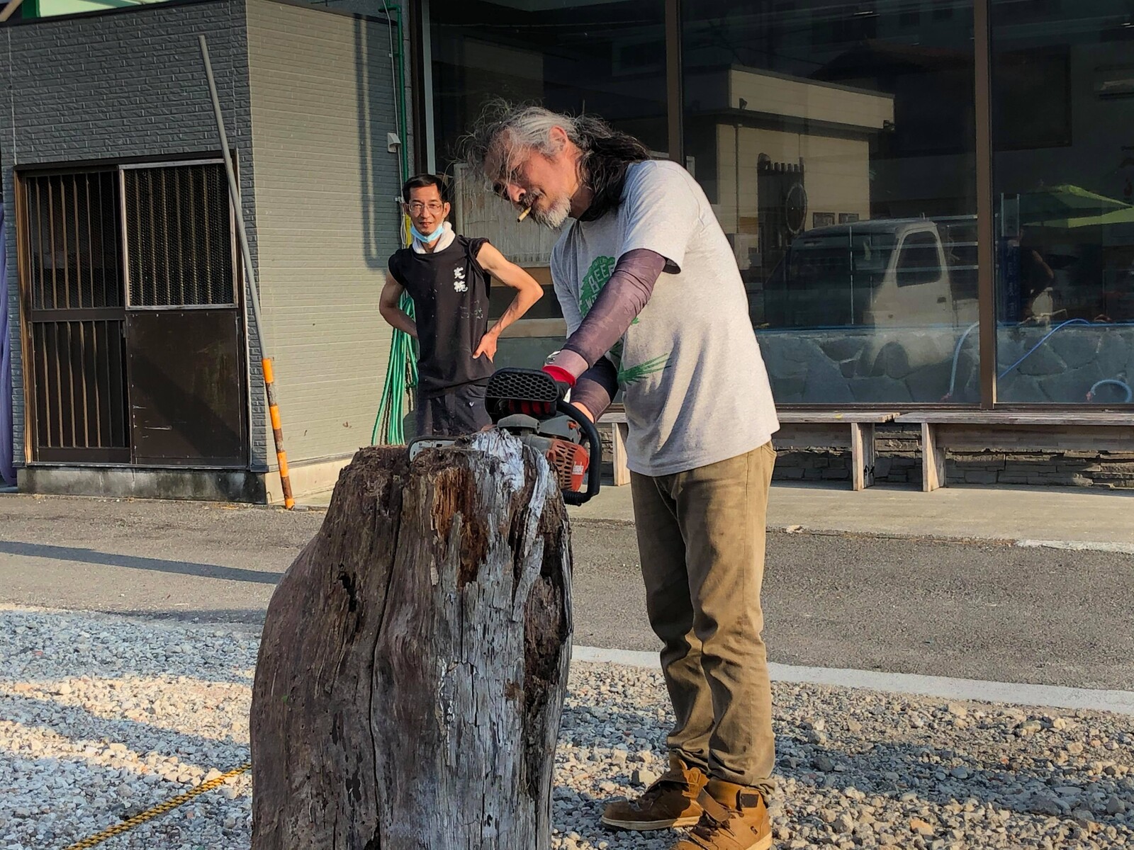 前回、戸田のワイルドな大人たちが山から運んできた大きな切り株。