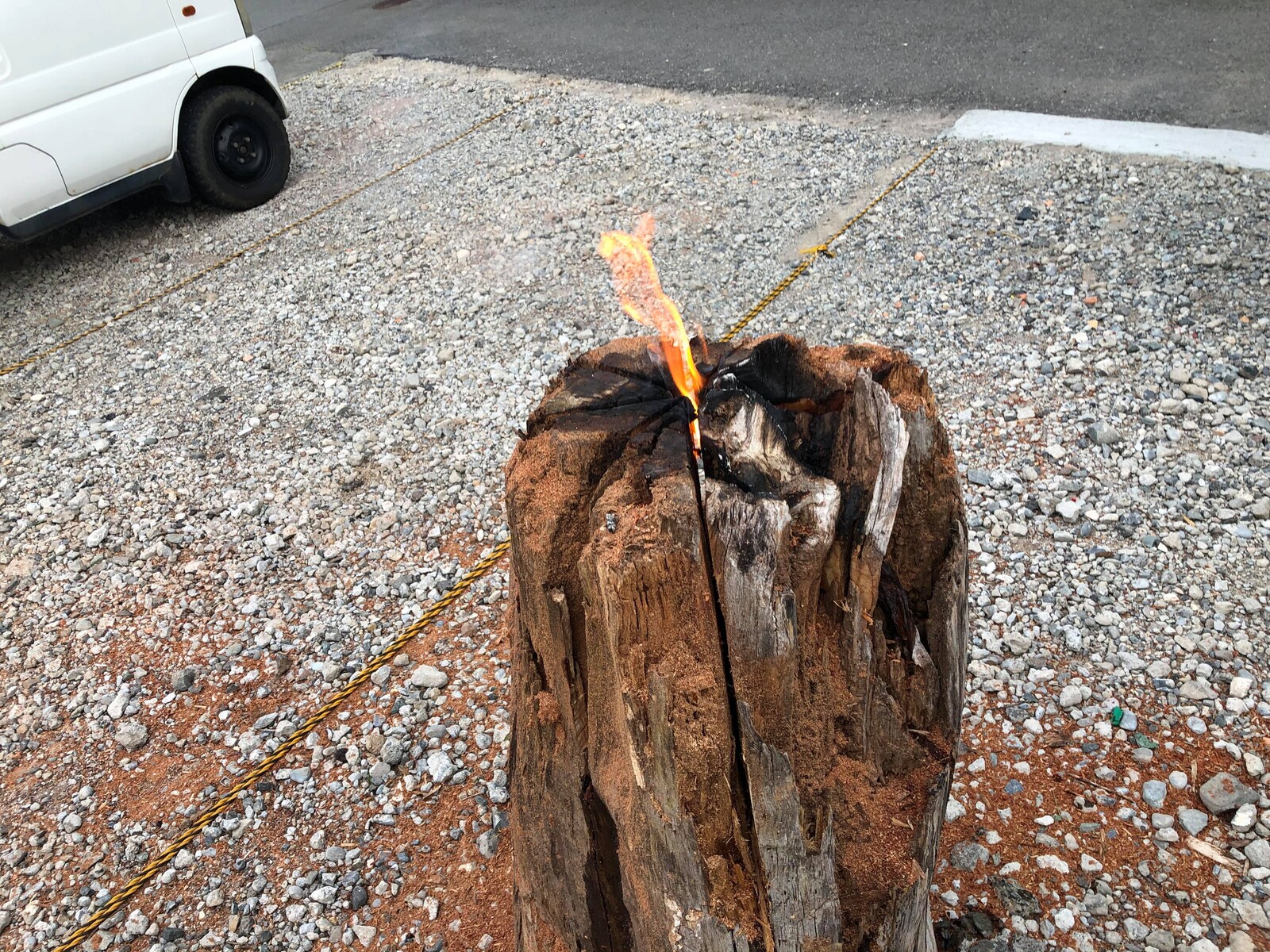 その時、例の切り株に着火がされました。
