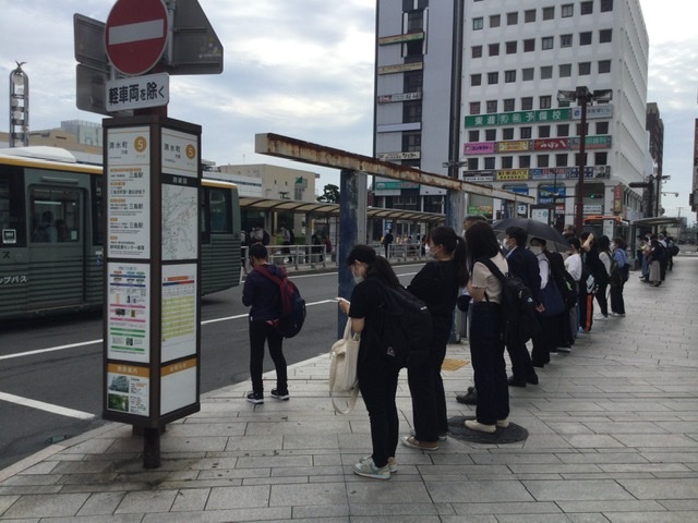 沼津駅←→三島駅間を結ぶ路線バスは、東海バスと伊豆箱根バスが共同運行していて、通勤・通学時間帯の7時台には1時間に8本が走っています。