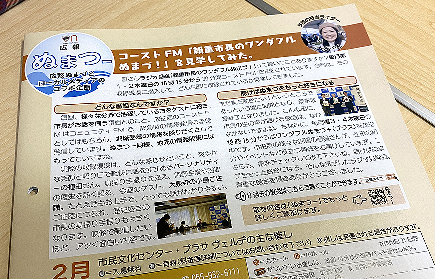 前回、頼重市長がMCを務めるコーストエフエムのラジオ番組「頼重市長のワンダフルぬまづ(略してワンぬま)」を見学してきました。その流れで、なんとこっちゃん@ぬまつーが番組に出演することに!!